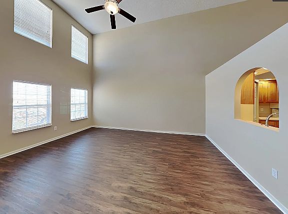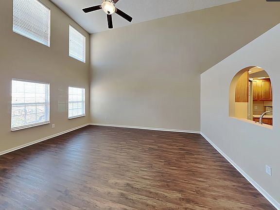 Bright open layout with vaulted ceilings and large windows bringing in natural light