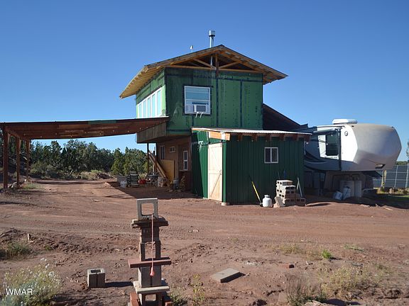 Off Grid/Preppers Paradise. The current owners have spent a lot of time and money getting this property to this stage in it's development, unfortunately unexpected health reasons mean the sellers can't complete their dream. The 158+ acres has a lot of diverse scenery with rock outcroppings, flatter areas, spectacular views, yet remains secluded and private. Only 20 minutes from Snowflake on good roads. Fully fenced (over 2 miles of fencing). The buildings are located approx. .5 mile into the property on graded dirt roads. They cannot be seen at all from El Dorado. The square footage consists of a 40' Montana 5th Wheel with 5 slides, 2 bed, 1.5 bath, full sized double door fridge w/ice maker and filtered water, high efficiency heat pump mini-split, on demand water heater. (Continued) The rest of the square footage is approx. 500 sq ft , lower portion has 1 ft thick Cob walls, framed & pl for 1 bed & 1 bath, dwarf wood stove.