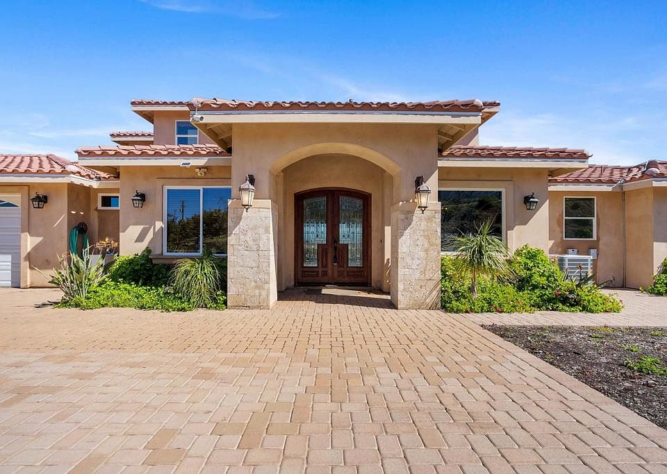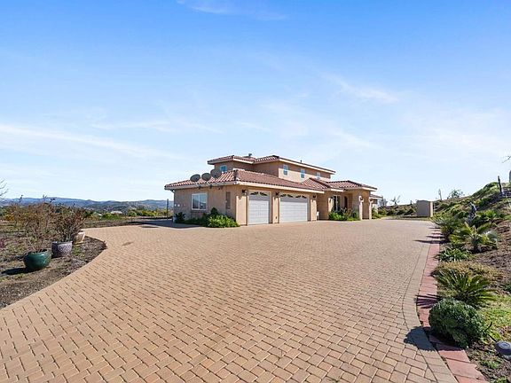 Welcome to Entrada al Sol located in the beautiful rolling hills of Bonsall.This 2020 custom built home is perfectly situated to receive all the amazing panoramic mountain views. As you enter through your private gate and drive past the abundant fruit trees you find an excess of usable land and opportunity! Upon entering the home you’re welcomed by high ceilings, an open floor plan and abundant natural light. Solid surface tile flooring, granite counter tops & recessed lighting give way to the large kitchen area that perfectly flows into the living room and outside patio. The primary retreat is on the main floor with large bathroom and walk in closet. You can enter the oversized balcony patio on the second level from both bedrooms and from a separate entrance. Laundry room with sink and side door entrance to property. You'll love the extra large driveway and 3 car attached garage. Barn area for horses or other animals and storage. Water well on property. Secluded but not far from Hwy 76. Come see for yourself!