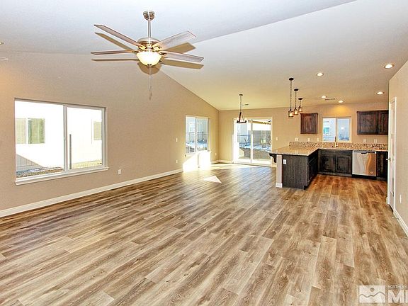 New Construction House in East Carson with Mountain Views. 3 bedrooms and 2 baths. 1544 sqft, 2 car garage. Great Room with vaulted ceilings and gas fire place. Granite counters in the Kitchen, Bathrooms and Laundry Room. LVP Flooring in Great Room, Tile floors in Bathroom. Front yard is Landscaped. Fully Fenced Back Yard.