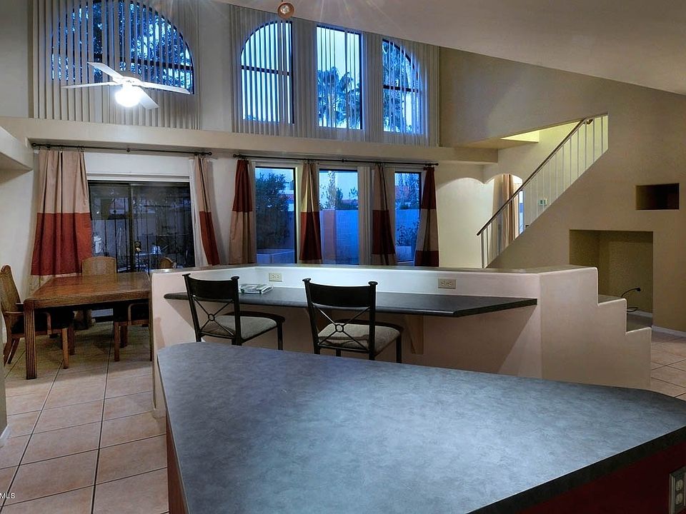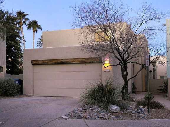 Santa Fe style home in quiet, desirable central area neighborhood close to UMC, Rillito River Walk, Trader Joes, shopping and restaurants. 1801 sqft, 3 bedrooms plus den, 3 full baths, large great room with soaring ceiling, walls of arched windows, light and airy, gas fireplace and open flowing floorplan. Kitchen opens to the great room with center island, gas stove, built-in food pantry, extensive cabinetry and ceramic flooring. Skylights, ceiling fans, master with garden tub, security doors and enclosed rear yard with covered patio. Located across from community pool and ramada...a must see!