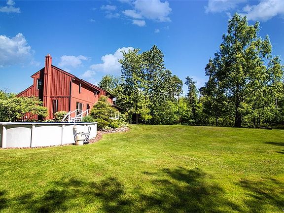 This spacious single family home on 3.7 wooded acres, peacefully set back approximately 400 ft from road, is the essence of country living. Well maintained 2,394 sqft home offers 3 bd, 2.5 baths, and a flexible room that can be an office, workout area or crafting area. The home features an abundance of natural light with skylights and cathedral ceilings. New flooring throughout the main level, Updated master bath, a pellet burning stove to keep cozy in the winter, and an above ground pool for the summer heat. Plenty of storage space with an attached 2 car garage & a detached garage ideal for stowing away gardening tools and camping/sports gear. There is an outside pen With concrete for dogs connects to the attached garage. All stainless steel KitchenAid appliances are included, along with the washer and dryer located within the first floor laundry room. New 2018 propane 95% efficiency Heil furnace. Move in ready to enjoy nature and quiet with your family on your back deck viewing the sunrise from the east and your front porch enjoying the sunset from the west!
