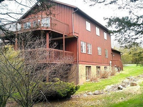 Have you been looking for a spacious home that is private, surrounded by nature yet is quickly and easily accessible to Doylestown, New Jersey and the Lehigh Valley? This well maintained custom country contemporary has the complete package! Perfectly placed on 5.26 acres this 4 bed / 5 bath home embraces mother nature by providing beautiful views from the large multi-level deck of the woods, pond and stream which borders the back of the property. Hardwood and tile floors run throughout the first floor from the dining room with newly renovated marble tiled half bath and doors to the rear deck to the sunken living room with built in book shelves and a double sided stone fireplace. Sharing the fireplace on the opposite side is an even larger family room also with access to the deck, a marble tiled half bath and guest bedroom or office. The large kitchen with new stainless steel appliances provides a breakfast room and plenty of counter space for all your cooking needs. Completing the first floor is a large mud/laundry room accessed from the 2 car attached garage. On the second floor you will find a tiled floor hall bath, 3 bedrooms. You will never want to leave the Master Bedroom with its own private deck, walk in closet and newly renovated, custom marble bath featuring 2 vanities, Jacuzzi tub and full marble shower with body jets. The full walk out lower level has one side finished with marble floors, brick fireplace, full new marble floored bath and doors leading to the back yard. The other side has its own outside access and is currently used for storage and utility space. Located in Blue Ribbon Palisades School District and a short walk from the waterfall at Nockamixon Dam.