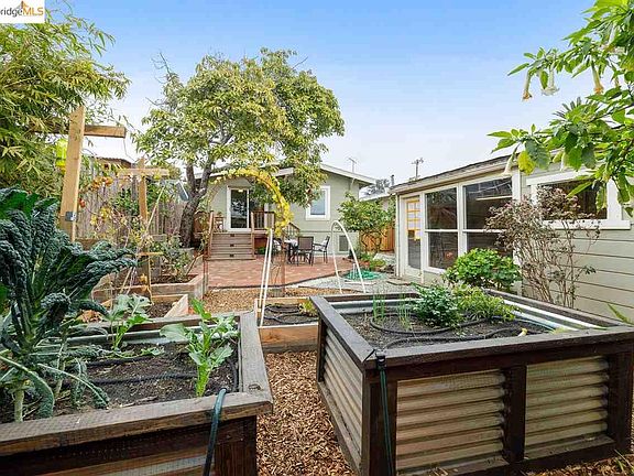 Beautiful sun-drenched home with a fabulous floor plan and charming character throughout. Upon entering you are greeted by its gleaming hardwood floors, fabulous open space and incredible original details. A picturesque fireplace centers the large living room. You will find the large formal dining room is perfect for entertaining or relaxing meals. The kitchen offers you not only plenty of storage and space, but light cascades through inviting sliding glass doors that open to the enclosed landscaped yard where you will find a fantastic deck, designer pavers- the perfect spot for your fire-pit and vegetable beds & fruit trees galore - even an avocado tree! More features include 2 spacious bedrooms & 1 updated bathroom, a detached one-car garage that already has plans submitted to the city of Oakland to be upgraded & is perfect for an art studio, gym, workshop, home office, a guest cottage or anything else your heart desires. Very convenient location- urban convenient living at its best!