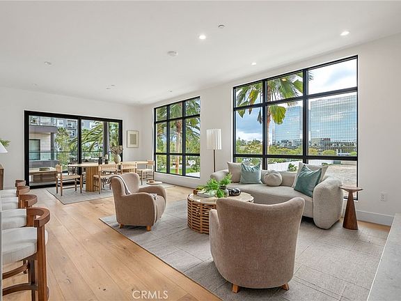 Residence 8 features a spacious primary suite, including a bonus sitting room, a private terrace, dual walk-in closets, and a spa style bathroom. Expansive windows flood the space with light, offering views of the pool deck below and Uptown Newport Park in the distance. Plus, the two private balconies provide a unique neighborhood perspective, creating the perfect setting for alfresco entertaining or a serene personal retreat.