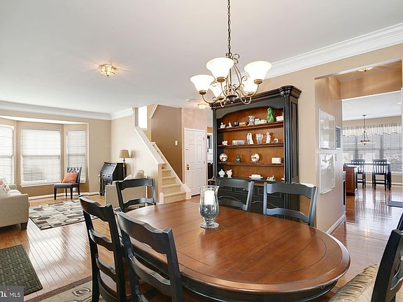 - Ceiling Fan(s), Kitchen Island, Recessed Lighting, Crown Molding, Carpet, Open Floorplan, Wood Floors, Breakfast Area, Kitchen - Table Space, Family Room Off Kitchen, Chair Railings, Primary Bath(s)