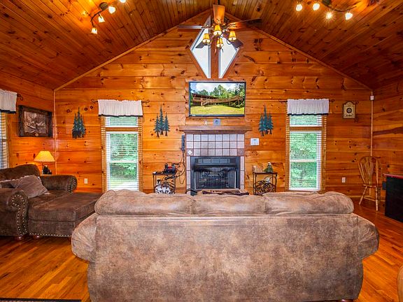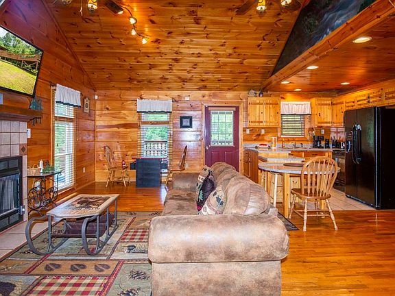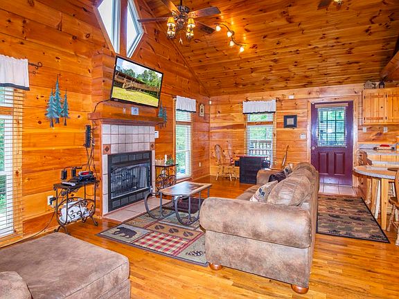 Just Listed! Escape to the Great Smoky Mountains in your very own private and secluded log cabin and experience Tranquility. With this true log cabin you can enjoy the peaceful surrounding of The Great Smokey Mountains National Park in your very own Log Cabin Retreat yet minutes away from Pigeon Forge and Dollywood. Just imagine.... a private and tranquil mountain setting, relaxing on the covered porch, enjoying that first cup of coffee in the morning as you experience nature ''up close'' and personal. Retreat to your cozy ''one level'' log cabin, enjoy the warmth of the gas fireplace and relax in the comfy living area with flat screen, blue ray and premium football channel. The full size oil mural was hand painted by local craftsman and is a unique conversational work of art and adds to the unique ambiance of this log cabin. The kids and adults will enjoy the sit down arcade game with over 80 games including pac man. There is a full bath with tub / shower. The covered deck features a conversational area with outdoor furniture, retreat to the hot tub and enjoy a relaxing warm water massage. Use the 'cat walk' to retreat to the raised deck platform with ample setting and a wood burning "fire pit", perfect for enjoying the splendor of the beautiful sunsets you will experience there.