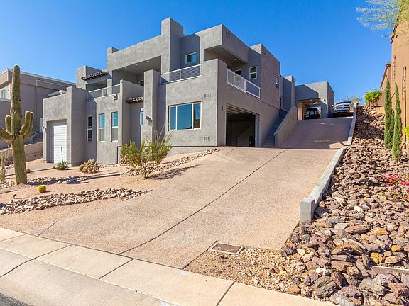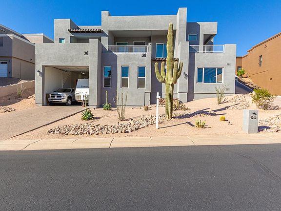 Custom contemporary home in the golf course community of Red Mountain Ranch. Built in 2017 this 3109 livable SQFT, 3221 of garage SQFT including RV garage will not disappoint. 4 bedrooms, 4 bathrooms, 4 private balconies with spectacular mountain and city views. Perfectly tucked into the side of a mountain in one of the most highly desired Zip Codes these exquisite custom finishes spare no expense or attention to detail. Soaring ceilings, high polished floors, crisp palette, art niches, upgraded lighting/ceiling fans, & formal dining area w/backyard views. Stunning chef's kitchen features granite counters, breakfast bar, pendant lighting, SS appliances, pantry, & European style white cabinetry. Perfect home for entertaining inside & out. Private pool, 2 spas, 5 fireplaces & view deck.