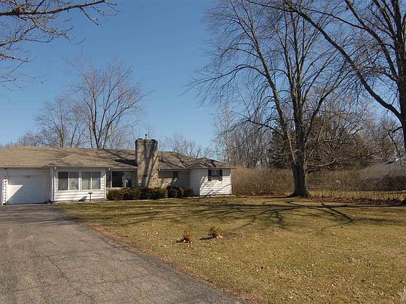 3-Bedroom, 1 1/2 Bath, 2-Car attached Garage, Ranch on an unfinished DRY Basement with a 1.03 ACRE City Lot that includes a Fenced back yard! This home features an Enclosed 12 x 10 Front Porch, New Hardwood Floors, Newer Kitchen (3 years old) that includes an over the range Microwave, Stove, Dishwasher & Refrigerator, Beautiful Limestone Wood Burning Fireplace plus a 2nd Fireplace in the Basement. Pre-wired for a back-up Generator! Plus an Office/Den with its own Exterior Entrance and a wall of Built-in Book Shelves. The back yard has a concrete patio & a fire pit. The Living Room has a very large coat closet and a built-in Entertainment Center. The Dining Room has a great view of the huge back yard and a pocket door into the Kitchen. The Master Bedroom and 2nd Bedroom include Built-in Dressers in addition to ample closets. New, tear-off, Roof 2009; New Electrical 2012 including 200 amp service Seller may consider a Land Contract if the Terms are Right!
