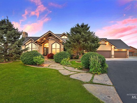 10acre dream property featuring a gorgeous executive home & renovated flex space! Incredible lot placement & 360* views of the Valley! Custom-built, ranch-style home with a modern refresh. This 5 bed 4.5 bath residence is updated with new paint & flooring throughout. Features include floor to 18ft ceiling windows, a rock surround & wood-burning fireplace. Entertain guests in the wine & whiskey lounge with full size wine fridge & bar. Master suite has gorgeous views, fireplace & private deck access. Downstairs is 3k sqft walkout basement with recreation space, kitchen, home office & gym. An outdoor living space showcases a kitchen & bathroom. The solar-heated, salt water pool features a water slide, jumping rock, & diving board. Activities include; a basketball half court, sandpit, grass volleyball court, fire pit & swimming! Barn includes full kitchen, bathroom & loft as an additional living space for guests. OR convert back to full Barn for horses. Riding arena could easily be built on back 5 acres.