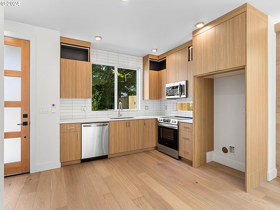HOLTE available on this property - huge tax savings! Welcome to your dream home in a phenomenal location with a 92 BikeScore, just steps away from coffee shops, groceries, and more. This impeccably designed home captivates from the moment you enter. The kitchen is a chef's delight with warm cabinetry, intricate tilework, built-in features, and sparkling stainless steel appliances. The open concept floor plan seamlessly connects the kitchen to the dining and living areas, showcasing additional storage, a designer accent wall with built-ins, and ambient accent lighting. The lower level boasts a guest bath adorned in moody colors and exquisite tilework. Upstairs, the primary suite and spacious secondary bedroom feature perimeter lighting and are flooded with natural light through expansive windows and lofty ceilings. Outside, your private fenced yard with a patio invites relaxation and outdoor enjoyment. Located near Reed College and less than a mile from the popular Woodstock neighborhood, this home offers the perfect blend of modern luxury and convenience. Don't miss the opportunity to make this your own oasis in the heart of a vibrant community. Quality builder provides extended 2-10 warranty with sale!(List price is subject to the buyer qualifying for the Portland Housing Bureau HOLTE + System Development Charge exemption program to promote affordable housing in Portland, call for more info.)