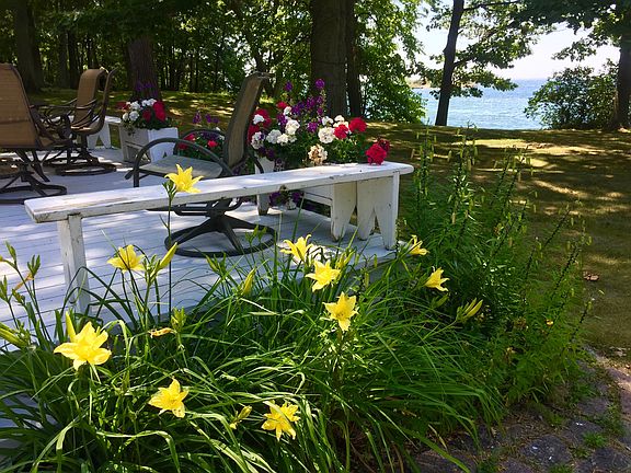 Unspoiled natural beauty and miles of clear blue waters create a stunning backdrop for indoor-outdoor living at 42627 Cross Island Road. Surrounded on three sides by water, this charming escape plays the perfect host to water-loving family and friends. Enjoy a deep-water dock and boathouse; main cottage and guest house; 1000ft of waterfront; a secluded location and stunning vantage overlooking the St. Lawrence River; and close proximity to multiple airfields.