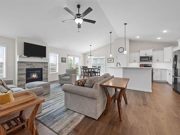 This beautiful ranch built in 2021 is situated in a quiet neighborhood and just a stroll away from Boulder Peak Intermediate School! You will appreciate the open floor plan with a split bedroom design, sun-filled great room with a gas fireplace and stone surround. It offers 4 bedrooms, 3 full baths and 2,369 sf of well-designed living space and exceptional value. Thoughtfully maintained and move-in ready, it showcases numerous upgrades including engineered wood flooring, sleek quartz countertops, and more. Enjoy outdoor living with a spacious deck with steps leading to a large patio, perfect for entertaining and outdoor fun. The flat, fully fenced yard features raised garden beds and newly planted trees along the back. Immediate possession available—perfect for getting settled in before the new school year begins. Call today for a private showing!