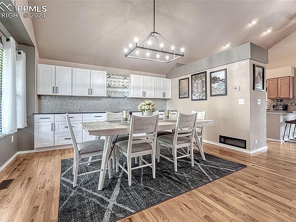 This is the home you've been waiting for and the location can't be beat! Conveniently located to Woodmen, Dublin, and Austin Bluffs this beautiful 4/4/3 tri-level home backs to open space with Pikes Peak views! Make your way to the covered front porch and step inside to the open floor plan of the main level. A thoughtfully designed dining space has entertainment in mind with wonderful cabinetry and plenty of storage. The kitchen has ample countertop space, a perfect pantry, and a peninsula bar perfect for enjoying those busy breakfast mornings. Better yet, take your meals outside to the back deck to fall in love with that Pikes Peak view. Head down to the lower level for a brightly updated living room with wood burning fireplace. A half bath and laundry space complete the level. Downstairs, a bedroom with walk-out to covered back patio and low maintenance back yard is perfect for your guests wanting a quiet space to retreat. A flex room adjoins and can be used as you desire. An additional 1/2 bath nearby! Lastly, the upstairs can't be missed. Your primary suite awaits! A spacious room with walk-in closet and of course the 5 piece attached bath with linen closet is everything you need. Two additional bedrooms with spectacular views and a full bath wrap up this level. Need to relax? Head to the back to delight in your very own swim spa! Or take a nature walk on the Homestead & Cottonwood Creek trail right outside your property! This home truly has it all. Updated throughout and a one a one of a kind home that won't last long! Book your showing NOW!