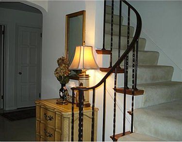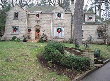 Charming and classy stone colonial, slate roof w/newer windows Stainless steel equipped kitchen w/ glass tile walls Impressive hand painted wallpaper in diningroom w/french door to covered patio. Closets (2walk-in,his&hers, 2cedar)2 chutes. Knotty pine mastr. den w/cathedral ceilings and gas fire place off mstr suite. Gameroom w/ wet bar & liquor cabinet to FR w/hand painted wallpaper &fireplace.8 panel doors thru-out,charming exterior arched doors Attached garden shed and A-frame play house w/storage