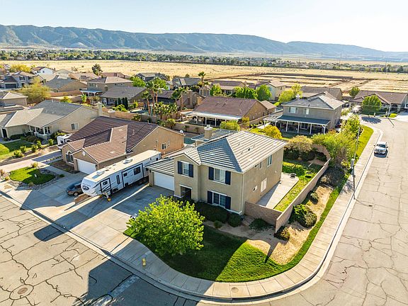 Upstairs, the expansive primary suite includes a walk-in closet, dual sinks, and a sunken tub. Three additional bedrooms complete the upper level.The backyard features a newer covered patio and generous side yards, offering ample space for gatherings or potential expansion. Additional highlights include solar panels, proximity to Quartz Hill High School, and location within the Westside Union School District.Don't miss the virtual tour and video—this is a must-see property!