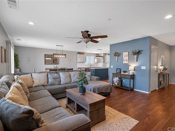 Upgraded 4+2+Bonus Single Story Home with Nearly 1800 sqft of Open Living on a Large Landscaped Lot, Pool, RV parking, and PAID Solar!!! This home highlights, recessed lighting, upgraded ceiling fans, and light fixtures throughout, upgraded flooring, tankless water heater, and much more!!! Enter into a large living room that opens to the dining. Stunning center island kitchen with granite counters, subway tile backsplash, stainless steel appliances, and pantry. Laundry room with storage that leads to the 2 car garage. Spacious primary bedroom, with an upgraded dual vanity. Three secondary bedrooms, and an upgraded full-size bathroom to share. The beautifully landscaped yard highlights a custom fire pit with sitting area, and above ground pool. Don't miss the opportunity to make this your Next Home!!!