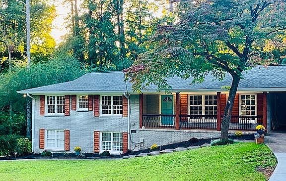 Immaculate All Brick Ranch on beautiful, quiet tree lined street! Owners offer a full 3% buyers agent commission. Contact Drew at 678-576-2706 to schedule showings. Mid Century custom details throughout, including glass tile in bathroom, granite in kitchen and bath, custom cedar shutters and pillars, gorgeous floors, and all new modern lighting. This home is so inviting, with an open floor plan to gather around a stunning fireplace, and look out onto the lovely screened in porch and fenced, private backyard. Kitchen is a dream, with stainless steel appliances and more cabinets than you can possibly fill. The fenced private backyard also includes a patio area and a 900sqft oversized 2-car garage to delight any car fanatic or hobbyist. The terrace level includes a second full kitchen, laundry room, bedroom, bath, dining, and living area.