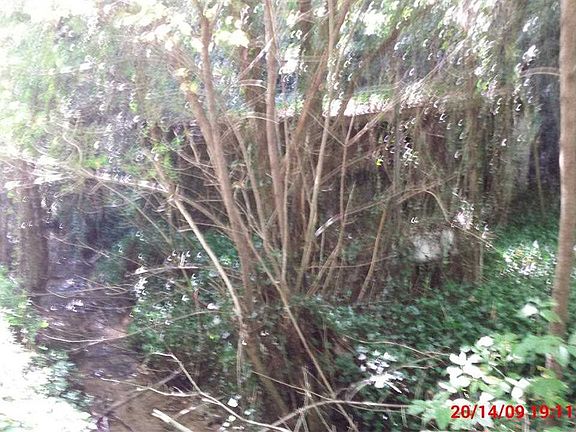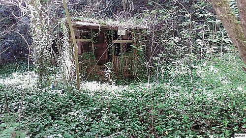 2 Acres with 3 out buildings on a small stream with a huge mountain behind property. Has a good flat area to build where the house that was there burnt down.