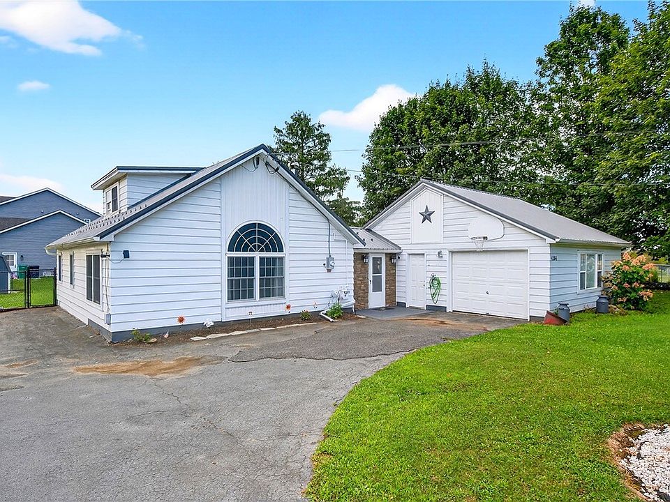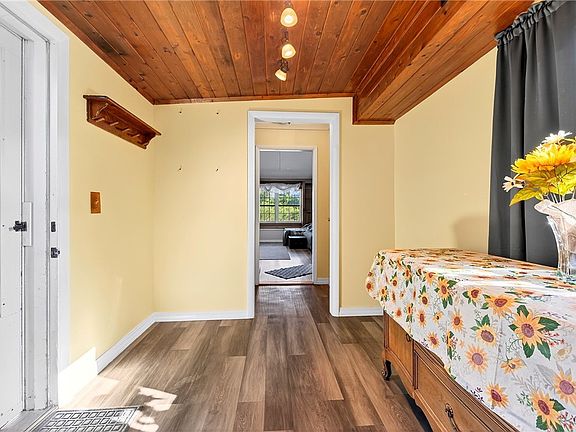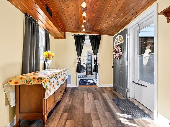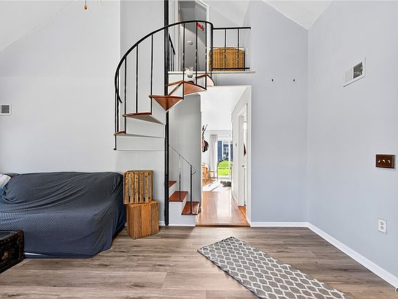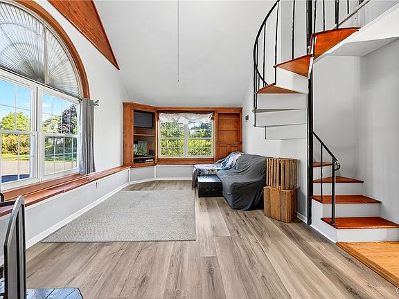 Charming bungalow located in the highly regarded Westhill School District! This home is filled with character, featuring soaring cathedral ceilings, rich natural woodwork, built-in shelving, and a cozy wood stove that adds warmth and charm. A striking spiral staircase leads to the third bedroom, creating a unique architectural touch.