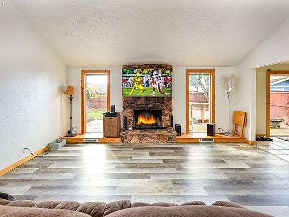 Here it is! Move in ready with fresh interior paint, new flooring and interior doors. Living room has a high vaulted ceiling and a fireplace. Glass slider off the dining room opens to large fenced back yard with paver patio, and additional entertaining wood deck with serving bar, hot tub and raised garden beds. Kitchen has new range hood, newer fridge, open concept shelving and cabinets. Storage space in garage and under covered area on side of house. Dog run on side of house.