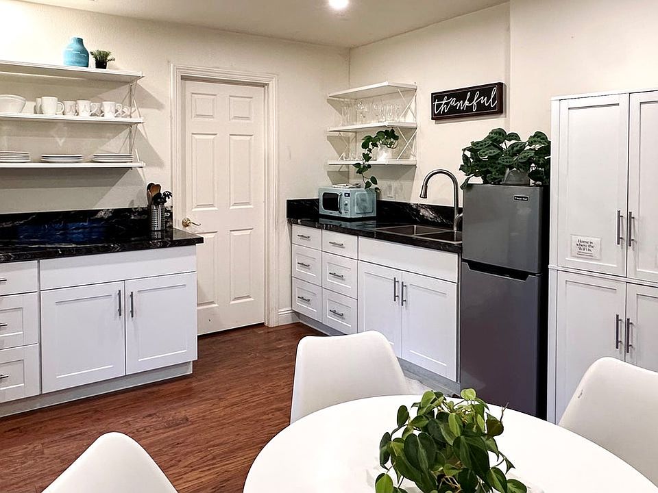 Welcome to the Garden Suite! This beautiful space invites you and your fury friends to enjoy a big backyard that you can enjoy just outside the stunning fully stocked kitchen through french doors. With a sleek bedroom and stylish bathroom you'll have lots of space to enjoy. The living area offers comfy seating, a tv and a nice dining area. This studio is gated and has lots of space for pets to run around and play outside. You will have your own private washer and dryer for cleaning and wifi is ready to go for you. DETAILS This space is a part of a larger home that has a pool. The pool is not shared - only accessible for those in the larger home. That home has its own backyard, laundry, parking, entry, etc. This space also has it's own private laundry, parking, entry, and backyard. No smoking of any kind is allowed on property. The entire deposit will be withheld for breaking this rule. Wifi and lawn care are included in the rent price. Utilities are an additional $100/month and shall be paid with rent on the first of the month. Utilities will not be put in your name. Pet fees apply. Cats and/or dogs allowed. Refundable deposit: $1,600 Pet fee (non-refundable): $300 Cleaning fee: $200