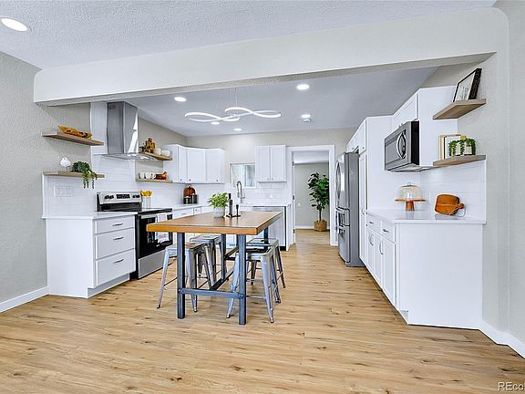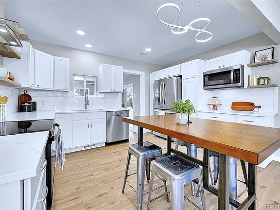 Simply gorgeous ranch home in the highly sought-after Broadway Heights neighborhood! The Cedar wrapped front porch with mission style front door greets you the moment you arrive inviting you to step into this captivating home with its perfect blend of classic charm & modern finishes. Inside this renovated home you will find new interior paint, Luxury Vinyl Plank flooring, new carpet & updated recessed LED lighting combined with the timeless appeal of coved ceilings. The heart of this home is its stunning designer kitchen with Misterio quartz countertops, full height Subway tile backsplash, floating shelves, Shaker soft-close cabinets & new stainless steel appliances. The main level boasts a natural light-filled open-concept layout that seamlessly integrates the kitchen, dining area, and living space. What makes this home truly unique compared to similar homes in the neighborhood is that there are 3 bedrooms all on the main floor, including the primary suite boasting 2 separate large closets & private 3/4 primary bath with dual vanity & glass shower enclosure with Waterfall shower head. Downstairs is bonus space with 4th bedroom, cozy family room prefect for watching movies or playing games, flex office space & convenient updated 1/2 bath. Out back there is a fully landscaped back yard with new sod, an attached covered patio perfect for entertaining & huge 1.5 car detached garage with space for parking 2 additional vehicles off the alley. Best of all, this home is situated on a quiet street while still being only a short walk or bike ride to shops & restaurants on South Broadway & numerous medical facilities (Swedish, Craig and Porter hospitals). New exterior & interior paint, new Whirlpool appliances, new sewer line, new electrical panel, new main water curb stop, 5 year roof certification, new flooring throughout, front driveway for additional parking, low taxes, no HOA! Located just minutes away from Platt Park & the restaurants/shops on Old South Pearl Street