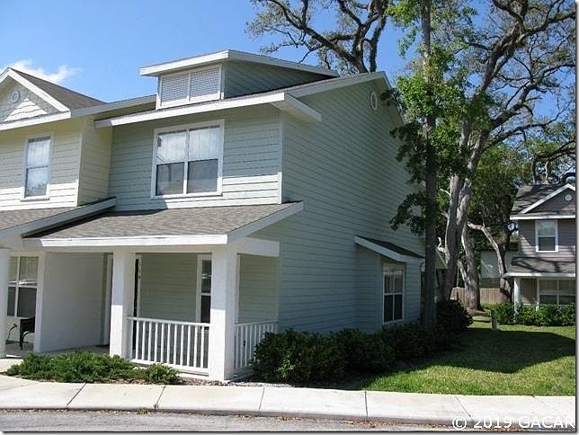 Premium 2 bedroom, 2 ½ bath end unit town home in quiet community close to the new Butler Town Center, Celebration point, I-75, Parks, shopping, restaurants, bus service, and UF. Front porch leads to entry foyer with ceramic tiled floors. Large Living room and dining room combination. ,hooded microwave over the range, ceramic tile floors, and pass thru window into dining room. Half bath downstairs and two master suites upstairs, each with its own full bath. The utility closet is complete with washer/dryer. A rear screened porch is off the living room. This end unit adds privacy, an additional bay window, and ceiling fans in the living room, bedrooms, and porch. Pictures are from 2012