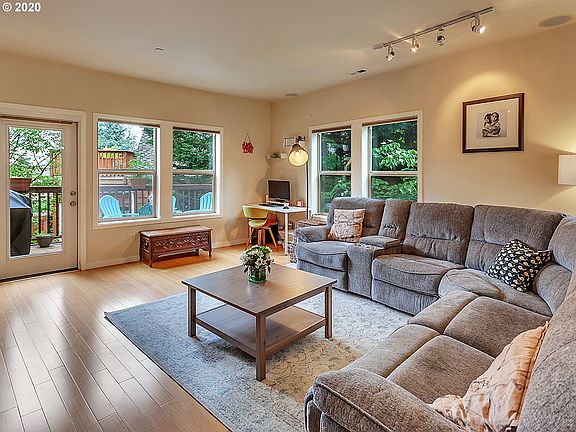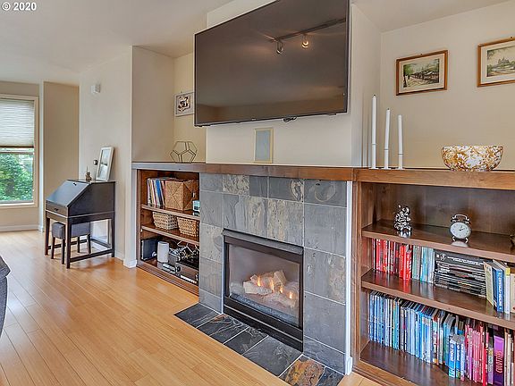 Fabulous end unit Townhouse in the Johns Landing-Lair Hill area that's minutes to Downtown, Tram, South Waterfront, OHSU and the Pedestrian Bridge. This light and bright home features a gourmet kitchen with gas cooktop, stainless steel appliances, granite, and large center island. Additional highlights of the home are bamboo floors, gas fireplace with built-ins, deck off family room, large master suite, bay windows, and side-by-side 2 car garage with tons of storage.Lovely courtyard common area. [Home Energy Score = 4. HES Report at https://rpt.greenbuildingregistry.com/hes/OR10183019]