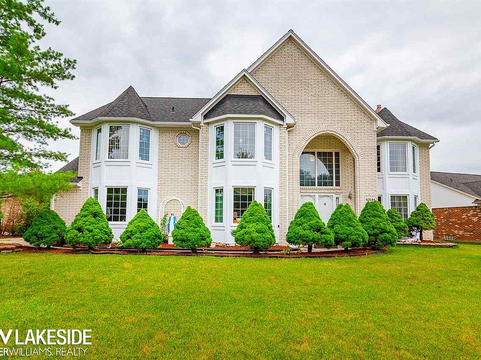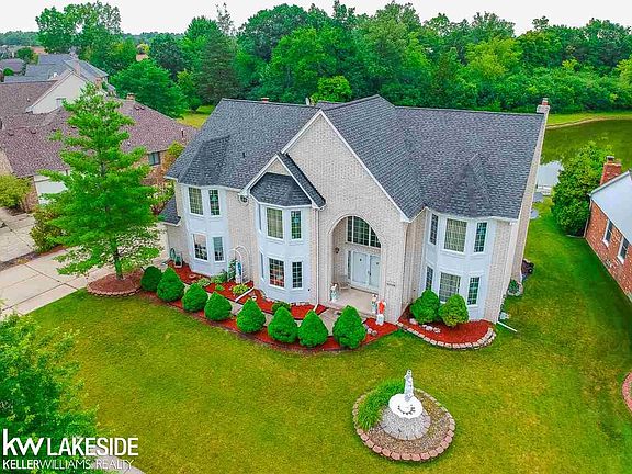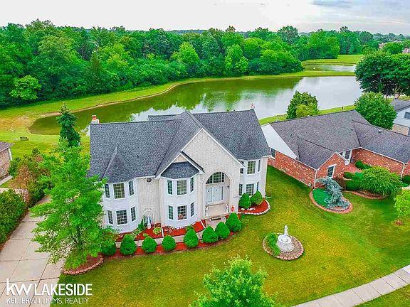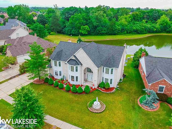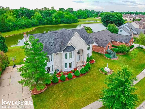 Active subject to home inspection. MOTIVATED SELLERS HAVE PURCHASED ANOTHER HOME. Prime location is Sterling Heights and the house backs up to a pond. The double doors open to a two story foyer with a winding staircase. This huge family home has 5 or 6 bedrooms and 4.1 baths. The bedroom on the main level can also be library/den. The GR has cathedral ceilings, a bar and door wall that opens to a brick patio. A full bath, half bath, and laundry room on the first floor. The MB is en-suite with a walk-in closet and a full bath. There is another en-suite on the 2nd floor. Two bedrooms have walk-in closets. The adjoining full bath has a marble jetted tub. A separate suite has a dressing area with a full bath. All the full baths have double sinks, ceramic showers, floors and marble counter tops. The finished basement has a full kitchen and bath. The bay windows in the front of the house are new. Roof 2009. HWT 2019. All appliances stay. Central vac. One year home warranty.