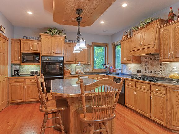 Custom built 2-story on 10 wooded acres. 36x105 pole building (partially heated). 4-stalls of heated attached garage, 4 decks and extensive landscaping. 4 gas fireplaces, wood and ceramic floors, vaulted ceilings, 9' ceilings on all levels and walkout lower level with in-floor heat. Wood furnace or propane heat - very economical. Immaculate condition - a must see!!
