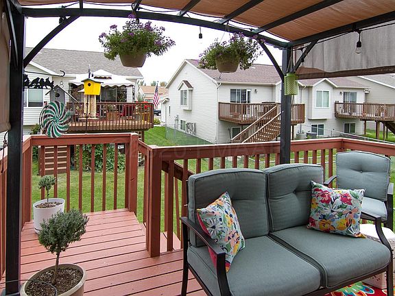 Very well kept 3 berm 2 bath twinhome. Previous model home so many upgrades. Maple cabinets and trim, jetted tub, window seat w/storage, 2 foot larger garage, deck gazebo to name a few. Very low specials! Storage shed under deck. New gas forced air furnace and carbon monoxide alarm