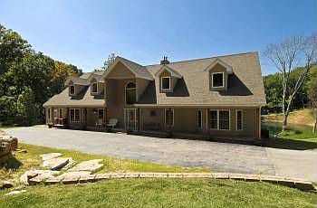 This private & serene 15 acre property boasts a 5 bdrm, 3.5 bath custom built 1 1/2 story home only 7 years old overlooking a beautiful 5 acre lake! Curb appeal is enhanced by low maintenance hardboard siding, architectural shingles & covered front porch spanning front of the home welcoming you inside to a 2 story foyer w/hardwood flrs opening to a 2 sty great rm w/wall of wndws equipped to add a FP & built-in shelving. Kitchen has vaulted ceiling, hickory cabinets w/crown molding, french drs lead to a 27x16 covered deck & 12x12 octagonal deck overlooking stocked lake w/dock & swim platform. Mn flr mstr bdrm has coffered ceiling, bay wndw & lux ba w/whirlpool tub, sep shower & a stunning lake view. Other features include 9 ft ceiling; part fin in LL w/10' pour, W/O, kitchenette w/stonework, rec room, built-ins in bdrm & rough-in for full bath. Enjoy zoned HVAC w/woodburn furnace, 1 car detached garage, 43x37 pole barn. Repaved driveway, elec gate, 2 concrete patios & fence in 2010.