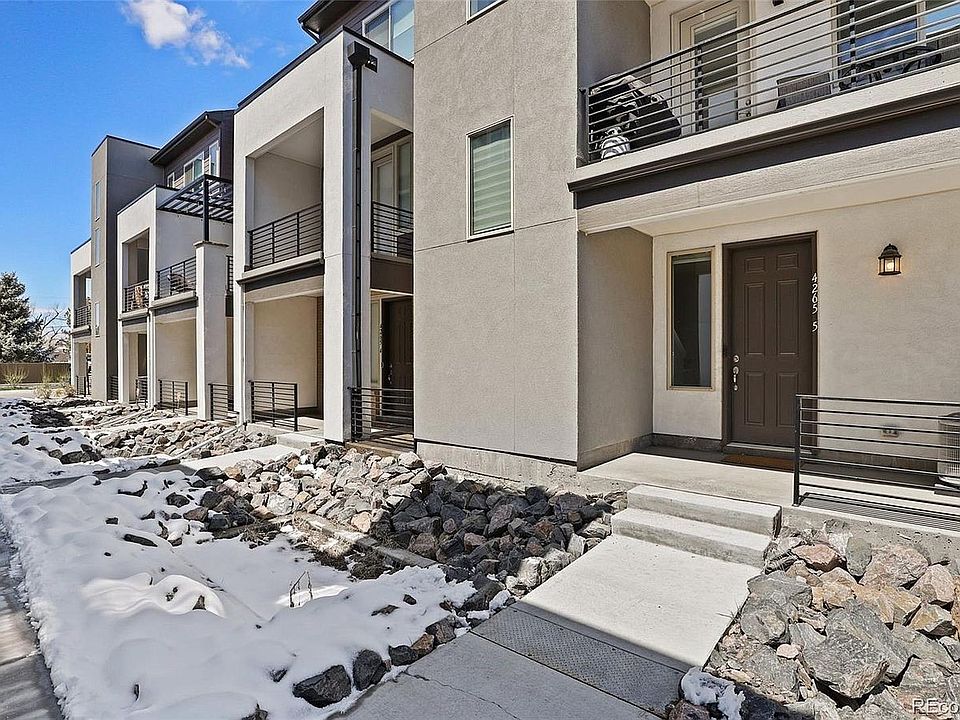 AVAILABLE SEPTEMBER 1ST! Stunning Observatory Park end-unit townhome with 3 levels of sleek modern design! A charming front porch & inviting and spacious foyer provide a warm welcome. Enjoy a modern open concept floor plan perfect for entertaining, a convenient powder room & a private balcony on the 2nd level. The spacious kitchen features a chic subway tile backsplash, gorgeous granite countertops, crisp white cabinets, a walk-in pantry, island with seating & stainless steel appliances including a gas range. Primary suite awaits on the 3rd-floor and includes a walk-in closet and a lovely bathroom complete with 2 sinks, a quartz countertop & a tiled shower with a bench. 3rd floor is completed by a full bathroom with a quartz countertop and 2 sunny secondary bedrooms that each have a walk-in closet. A bright laundry room and an attached 2-car garage with additional storage space. Native grass has been planted and actively being grown to the front-yard landscape. Ideally situated, tucked away in a quiet community that is centrally located; only a few blocks from the Colorado Light Rail Station and moments from shopping, dining, entertainment, and a new planned park!