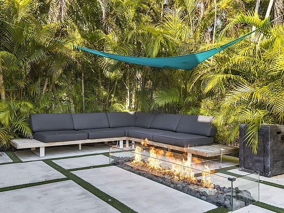 This home also includes surround sound throughout the tropical oasis in the pool area , showcasing smart home integration and luxurious living.