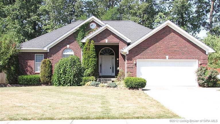 WOW what a home! Lovely ALL brick 3/2 home with basement. This home boasts of upgrades being a previous model home! Check out the large living room/formal dining (25x21) that features a gas fireplace, vaulted ceilings and recessed lighting. The eat-in kit is bright w/natural light spilling in from the bay window in the dining area. The master bedroom has recessed lighting, trey ceiling & the bath w/whirlpool tub & double vanity. There is a full basement w/family room & more room to grow! (plumbed for bath) The deep red brick w/dark mortar makes the white picket fence stand out. All sq ft and measures are approx. and are not warranted. If critical, Buyer should verify.\n\nInformation Deemed Reliable But Not Guaranteed. Information provided by the Southern Indiana REALTORS® Association, Inc. © 2010 SIRA Multiple Listing Service. All rights reserved. Brokered And Advertised By: RE/MAX FIRST Listing Agent: Vance G. Winslow