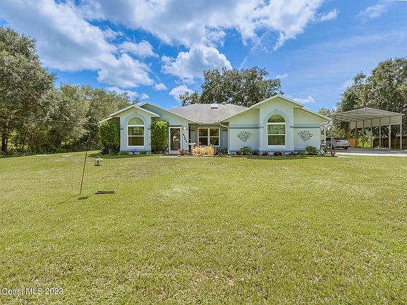 COASTAL COUNTRY LIFE AWAITS! Live in the country ON YOUR ACREAGE PROPERTY while being close to all that Coastal Florida offers. This EXPANSIVE, FULLY-FENCED, ELECTRIC-GATED PROPERTY will meet your need for space & privacy. Your RV & boat will be protected under the 25x32x12 CARPORT (built 2015). 10x16 sheds (1 NEW) will house more toys along with your lawn tractor & tools. Inside you will appreciate the UPGRADED KITCHEN with GRANITE COUNTERTOPS & NEW SS APPLIANCES. The bathrooms are renovated & there is new WATER RESISTANT LAMINATE FLOORING leading to the 12FT IMPACT SLIDER overlooking your giant lawn, gardens & shade tree. Sit inside the SCREENED PATIO or at the FIREPIT. Find TRIPLE PANE IMPACT RESISTANT WINDOWS throughout along with 2021 NEW SEPTIC SYSTEM & 2019 AC. All this & NO HOA!!