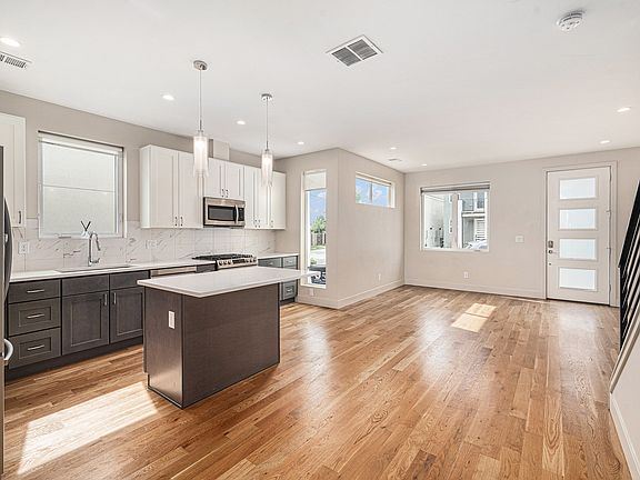3-Story Townhome with Den, 2 Rooftop Decks & Garage - Steps from Sloan's Lake. This modern 3-story, 2-bedroom + Den, 2.5-bath townhome delivers space, storage, and rare outdoor living - all in a prime location near Sloan's Lake. On the main floor, the open-concept living and dining area connects to a large kitchen with quartz countertops, stainless steel appliances, and a generous island. Also on this level is a private bedroom with wood floors, an en-suite bathroom, and a huge walk-in closet. The second floor features a bedroom with its own small balcony and standard closet, plus an oversized hallway walk-in closet and an additional hallway storage closet. This level also has a full bathroom and the in-unit washer & dryer for convenience. The top floor is made for entertaining or unwinding, with a versatile Den (complete with closet), a wet bar, and access to two rooftop decks - for morning sun & mountain views. Highlights: Three stories with bedrooms on separate levels for privacy Two private rooftop decks with mountain views Large kitchen island, quartz counters, stainless steel appliances Multiple walk-in closets plus extra storage throughout In-unit washer & dryer, central A/C and heating 1-car garage + easy street parking Pet policy: dogs only, no cats Available now and move-in ready - all within walking distance to Sloan's Lake, coffee shops, breweries, and restaurants, with quick access to Downtown and major highways. Schedule your showing today.