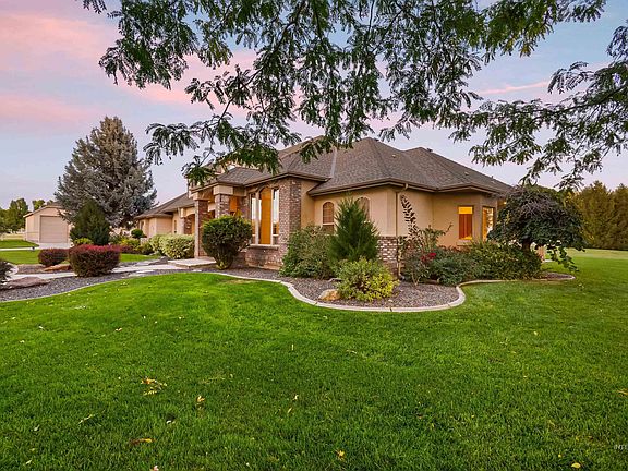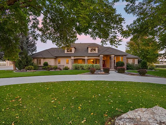 Behold and welcome to this gorgeous gem in Eagle. Boasting 3 spacious bedrooms alongside 3 luxurious bathrooms, this home offers ample space for comfort and relaxation. Sprawling 3887 square feet of living space providing endless possibilities for creating your dream home. Adding a touch of elegance and convenience with features such as, a built-in refrigerator, Hunter Douglas blinds, and built-in cabinets. The game/recreation room includes the pool table and a bar that is perfect for entertaining friends and family, while the wall of windows showcases breathtaking views of the yard and pond. With a shop, an RV bay, 5-car garage, and extra outbuilding this property offers plenty of room for all your vehicles and storage needs. Additionally, the shop conveniently comes with a 1/2 bath. The fenced pasture and mature trees create a serene and private oasis, while the fruit orchard adds a delightful touch to the landscape. Don't miss out on this incredible opportunity to own a truly remarkable property!