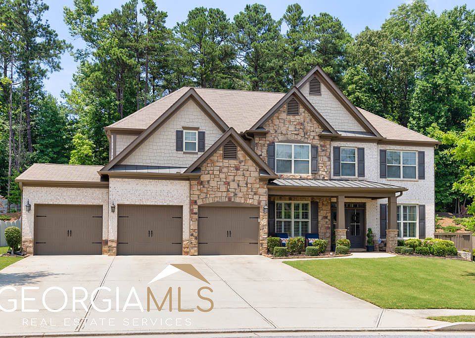 This well maintained craftsman home nestled in the beautiful community of Buford with a picturesque setting, featuring stone and brick accents, hard to find LEVEL DRIVEWAY AND LOT, lush lawn and a charming front porch with double entry doors. Inside this beautiful 5 BEDROOM 4 BATHROOM home, you'll find gleaming hardwood floors, wainscoting, coffered ceilings, and extensive trim work throughout that add an elegant touch to the space. The formal living room just off the front foyer provides wood finished french door entry, crown molding, and plantation shutters. Adjacent to the formal living space is the dining room with a unique light fixture and lots of space to host and enjoy your favorite meals. As you make your way into the kitchen and family room, the open concept allows for an open and airy feel. Stunning oversized kitchen shows off a large pedestal island, tall cabinetry, stainless steel appliances, walk-in pantry, and beveled subway tile backsplash. All showcased by desirable lighting that adds warmth and style! With a view to the family room you'll never miss a thing when gathered around the custom ship-lap fireplace, and built-ins. Just off the kitchen and family room is a BONUS SITTING ROOM with a gorgeous white brick fireplace, in addition to multiple exterior doors leading to the back patio entertainment space. The primary suite provides a private feel with tray ceilings, tiled glass shower, soaking tub, double vanity and a large walk-in closet. The wooden staircase leading to the second floor adds a rustic yet sophisticated feel to the home. Outside, is a lovely back patio complete with an outdoor fireplace, and large TV ready to go and included with the home, making for the ideal spot to entertain friends and family or enjoying a quiet evening under the stars. Lots of space for a private pool!! Community Amenities include playground, clubhouse, POOL and more! Conveniently located in the highly sought after Buford City School District, as well as lots of shopping and dining options. As beautiful as these pictures are, they still donat do it justicea this home is a SHOW STOPPER!!