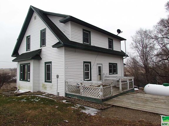 NEW LISTING FOR SALE - Acreage Ute, Iowa. 4.86 acres. Directions: from Ute at Highway 183 take CR - L-37 south 2.5 miles, turn right on 240th St. and go 0.3 miles to site located on south side. Home includes living room, dining room, kitchen, full bath, and 1 bedroom down. Upstairs there are 4 bedrooms and big walk-in closet. Basement has toilet, washer and dryer, cellar/cave, storage room, shop area, and open tiled area. The Home has propane heat, central air conditioning, vinyl siding, in 2010 windows and roof, 2017 the well was all updated, new 80 gal hot water tank in 2015, new 2000 gal septic tank in 2012. On the grounds there is an open front machine shed. There is $600 a year income for approx. 2 acres of cropland rented. Annual Taxes: $836