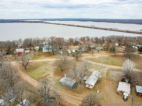 Mobile home on 6 lots in Oakwood Harbor. 2 bedroom, 1 bath. Has extra building (cook shack) with extra kitchen! Property has it's own water well and septic. Perfect for a weekend getaway or permanent residence. Boat ramp just down the road! 30x20 (approx) storage building great for storing boat. Fenced in area and addt'l storage buildings.