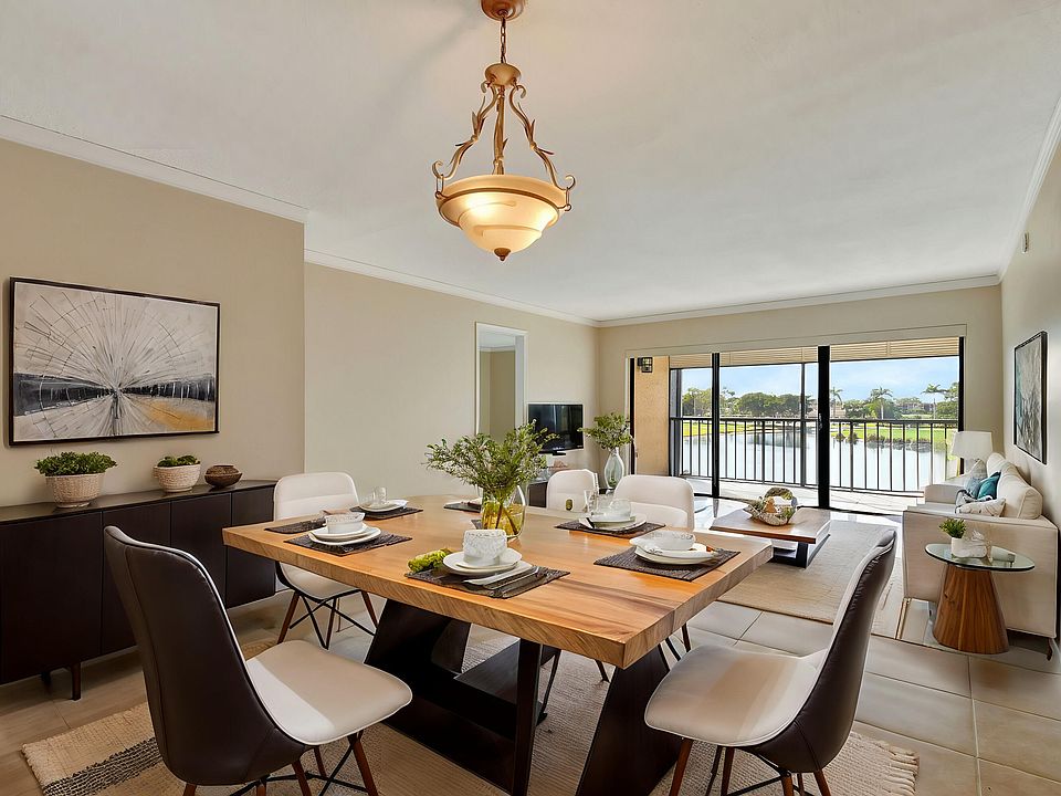 All Ages Welcome with this gorgeous 2/2 condo at the Fountains Country Club! No mandatory membership required. Enjoy expansive water views and relax on your screen-enclosed balcony or enjoy the pool located just steps from your front door! Primary Bedroom comes with sparkling lake views. Bedroom 2 features plantation shutters. Impact windows (non-impact sliders), new washer & dryer, extra storage room for bikes/luggage and garbage drop. Everything is here and waiting for you! Social and Golf memberships are also available. Schedule a tour today - Don't miss out!