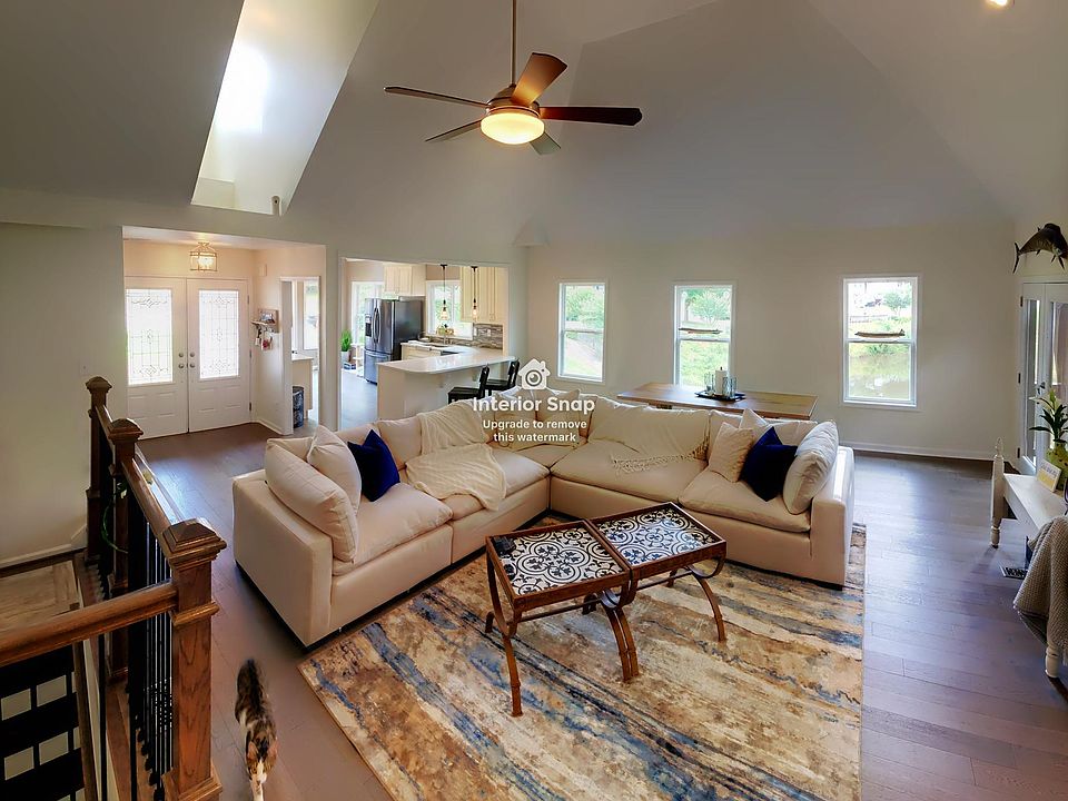 NOTE: The main floor is 1770 sq ft, with 3 beds and 2 baths. THE FINISHED daylight basement is another 900 sq ft. with a full bath and possible 2 bedrooms with an office/den. TOTAL SQ FT 2670. 4 or 5 bedroom 3 bath total. Its BRAND NEW. Everything! The wood and vinyl floors, the Samsung Black stainless appliances, the Napoleon electric fireplace, IT HAS AN IN GROUND SALT WATER POOL (only house in the neighborhood!) Charming Craftsman with modern touches throughout! Nest thermostat. Vaulted ceilings, open Floor plan, finished 3 room 1 FULL bath basement, steps away from the pool! Lake views. French doors in large living area lead to Large balcony on main for grilling/entertaining friends and family. Another large deck overlooking pool area, covered porch downstairs right outside of slider. 2 car garage, and 2 or depending on size of vehicle, maybe more, driveway parking. Only house that does not have a steep driveway. Great neighborhood, and neighbors! Safe and quiet, but so close to everything. 75 is just minutes down the street (expressway opening SOON!) Publix shopping center half a mile down the street, as well as Dunkin Donuts, Subway, dry cleaning, and LA fitness less than a mile away! Pictures don't do this home justice. Its a MUST SEE! Can be rented out partially furnished, or unfurnished. We suggest you come by and walk thru to see the furniture that could stay, as it was purchased from a staging company and is absolutely beautiful and perfect for this very large space! Tenants pays Electric, Water, Cable. Owner pays for lawn service.