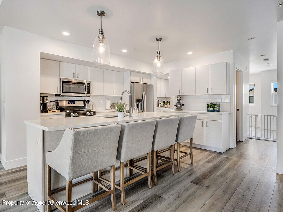 Introducing a nearly new townhome with modern finishes and views of Mt. Sopris in Cardiff Glen. The walk-in level features a one-car garage, laundry closet and office (a non-conforming bedroom) with a half bathroom (with room to add a tub/shower, if desired). The office walks out to a patio area that opens up to a shared lawn area. Upstairs, the main level features the living room with vaulted ceilings and kitchen area with an eat-in island, a walk-through pantry, dining room and a half bath. The spacious deck off the main level faces south with views of Mt. Sopris. The upper level features two bedrooms and a shared bathroom. The basement level features a 2nd living area/media room with a wet bar and the 3rd bedroom and another full bathroom. Additional amenities include central A/C and plenty of storage. Solstice Townhomes is a pet-friendly neighborhood located near the Sopris Elementary School and just 10 minutes to downtown Glenwood.