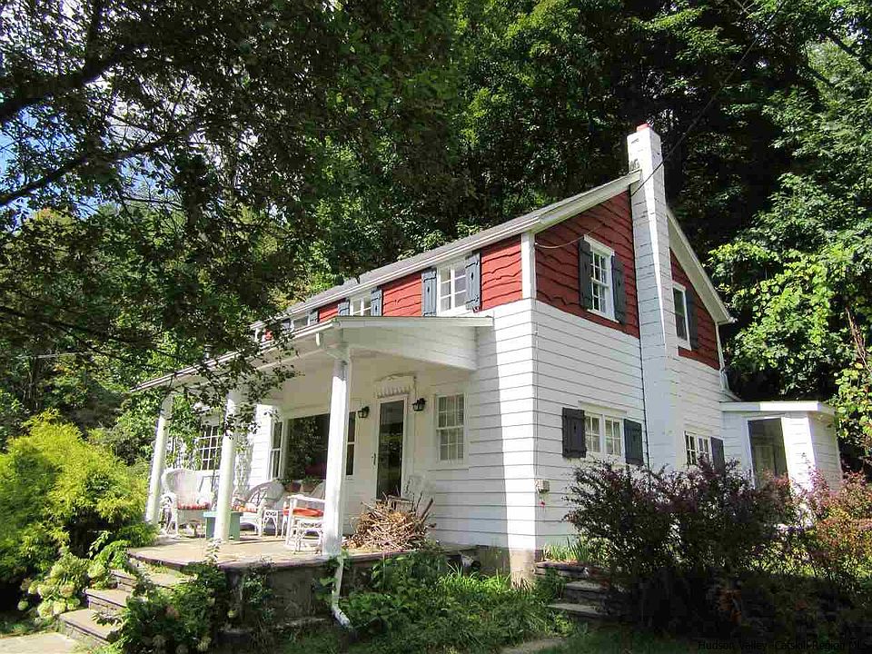 The current owner looked for a long time until this wonderful farmhouse, perfect for family, entertaining, and creating her art was found.. Sitting on the big rocking chair front porch with friends, reading or enjoying a drink, is an important daily ritual in the warm months. And, in cooler weather the big sunny living room offers almost the same sense of the outdoors! A wood burning stove adds to the homes coziness and is enjoyed visually from both the living and the generous dining room. The dining table calls for happy shared meals and is steps away from the big country eat-in kitchen. From the kitchen one can go out the side door to a patio & BBQ area and from there take a few steps up to the play yard and woods beyond. Then there is the wide stairway to the second floor landing which has its' own rocking chair reading area and a big window facing the trees & woods. The roomy full bath upstairs was once a little bedroom. And the small bedroom is currently the owners studio. The master bedroom runs from front to back of the house and has windows on two walls adding an airy spaciousness. On the ground level, off the living room, is the third bedroom or guest room. The property is developed with a sunny outdoor side garden & patio dinning area and from that level there is a stairway that leads to a shady play area all bordered by a "dog fence" but which backs up to open woodland and hikers exploration.