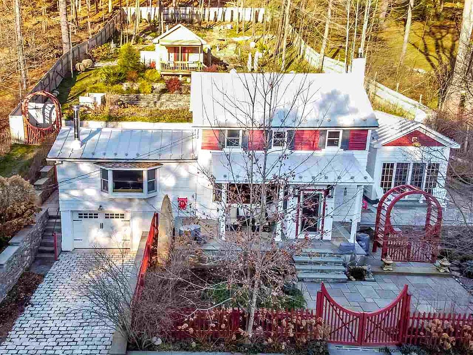 Come discover this quite perfectly restored home with its country charm, an exquisite pool, gardens and for summer parties a pool/guest house. This is a simple yet elegant farmhouse retreat property that backs up to state land. The home has been lovingly restored with detailed planning. New windows added to various rooms to let in more light and gorgeous custom made stain glass panels that accent the entrance arches from the dining room to living room are just a few of the current owners additions. The living rooms large picture window looks out to the mountaintop across the way and a wood burning stove becomes a glowing focus on chilly nights. A master or guest bedroom on the first floor is located privately off the living room. A second master bedroom is located upstairs as is a small additional bedroom or office that has its' own extraordinary mountain view. The retro-renovated kitchen has custom Big Chill retro-brand appliances with a porcelain farm sink to add to the original country charm of this one of kind home. A beautifully light sitting/sunroom has been added to the main house and is quietly sited off the kitchen so that the privacy from the rest of the home is insured. And, from here it is just a walk up to the pool for outside, a beautiful bluestone stairway leads to the extremely spacious and lushly landscaped patio surrounding the large and newly built inground pool. This is a perfect area for entertaining day or night! Another series of blues steps takes you to the newly built special guest house with its loft bed and kitchen area with running water where guests can perch with their coffee or cocktails overlooking the pool and unobstructed mountain view. The property is midway between the center of Woodstock and Phoenicia. Choices of hiking trails, retreat centers, craft and farmers markets, restaurants.. all that the Catskills have to offer are found in this Architecture Digest quality little jewel in the hills..