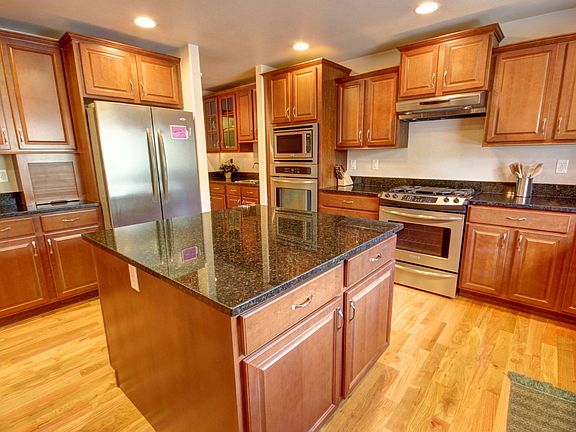 Large, luxurious & like BRAND NEW! 1-owner home features the largest chef's kitchen you've seen, complete with double ovens, giant center island, hardwood floors, pantry AND a walk-in pantry. All 4 BR's + a bonus room are upstairs including the HUGE master suite with vaulted ceilings, a gas-log fireplace, a spa-like bath soaking tub and glass & tile shower, double vanities with granite & giant walk-in. One of the guest bedrooms has its own full bath (like a 2nd master suite) and ALL BR’s are over-sized. There’s also a bonus room that can be purposed as a 5th BR or play area, home theater (it’s wired for surround sound), or ???. Enjoy the massive covered back deck (and front porch) both with no-maintenance composite decking. There’s a huge, fenced and landscaped backyard. Other features include central vac, extra deep two-car garage, central forced-air heating, and end-of-road privacy! See this immaculate home today.