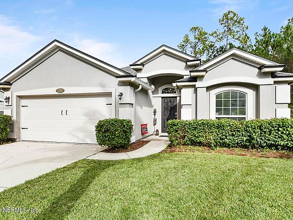 Welcome to this 4 bedroom, 2 bath home situated at the end of a cul-de-sac on a wooded lot on one side and lake view on the other. This home features an open floor plan, which is great for entertaining, and has split bedrooms. Kitchen has stainless appliances, recess lighting, pendants lights, breakfast bar to gather the family and a walk in pantry. Primary bath has double vanities, walk in shower and garden tub. Sliding doors leads to a cover lanai with spacious yard and lake view. This home is competitively priced to include a carpet and paint allowance, giving the new owner the opportunity to personalize and refresh the interior to their liking. Make it your own with your choice of colors and materials! Enjoy the community pool and splash pad, along with two playgrounds, walking track and walking/hiking trail to the local Sheffield Park. Minutes away from new grocery store, Rivercity Marketplace, Mayport and Kingsbay bases and the airport.