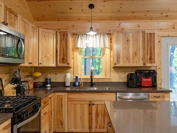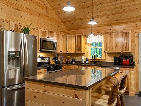 Follow the winding drive under mature trees to this modern cabin in the woods. Built in 2022, the knotty pine interior gives a cozy cabin feel. This home was designed to be low maintenance with a concrete floor and vinyl exterior, perfect for a Northern Michigan getaway or a VRBO. You'll love the in-floor heat throughout the home. The open kitchen/dining room/living room has 17 ft ceilings and is a perfect space for entertaining guests. This 12 beautiful wooded acres of property includes a large 24' x 32' pole barn/garage. Highest & best offer deadline of 5 pm Friday, 10/21/22.
